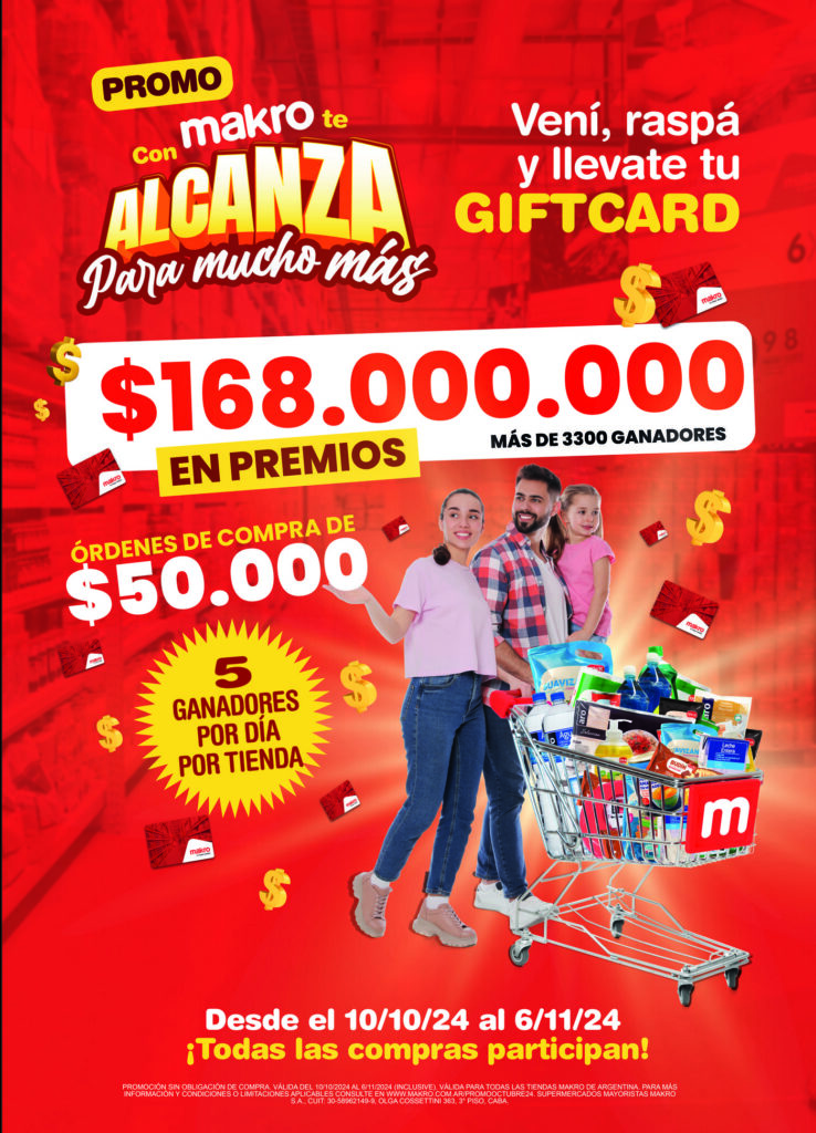 Acompañando su compromiso de estar cerca de sus clientes y ofrecerles las mejores opciones de compra, Mayorista Makro presenta una promoción sin antecedentes para el canal dado el monto total de premios. De esta forma, se repartirán $168 millones desde el 10 de octubre hasta el 6 de noviembre. Para participar, no necesita monto mínimo […]