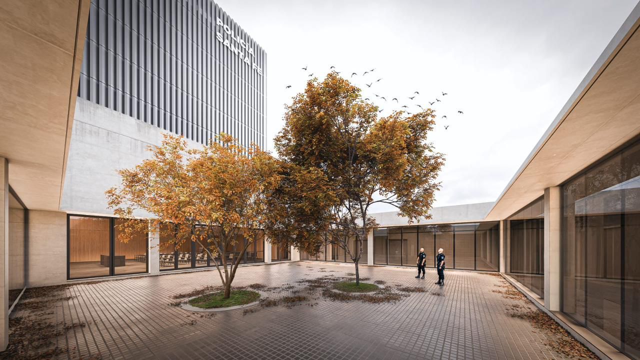 El proyecto incorpora criterios de sustentabilidad, entre ellos la instalación de retardadores para el manejo de aguas pluviales, la ejecución de terrazas verdes en todas las cubiertas planas y la colocación de paneles solares fotovoltaicos, que abastecerán alrededor del 25 % de la demanda energética del edificio.