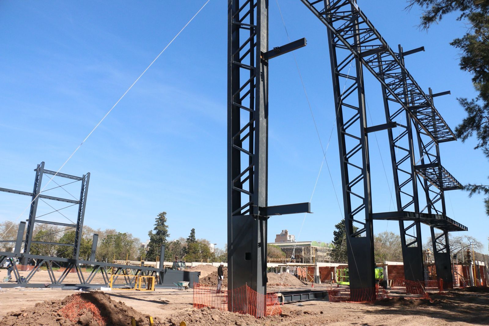 Sobre estos avances, el subsecretario de Arquitectura y Obras Públicas, Lucas Condal, señaló que “también avanzamos en la ejecución de columnas, vigas de hormigón y conductos pluviales principales en el bloque de servicios, donde estarán los vestuarios y baños”.