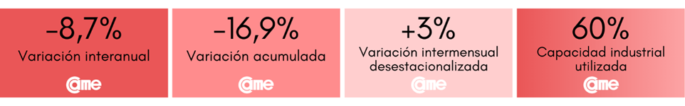 Todos estos resultados surgen del Índice de Producción Industrial Pyme (IPIP) que elabora CAME, con una muestra que alcanzó a 414 industrias pyme a nivel federal.