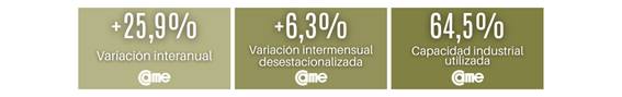 Todos los sectores analizados registraron crecimiento en la comparación interanual, así como en la medición mensual desestacionalizada. A pesar de la mejora, la industria pyme operó al 59% de su capacidad instalada, evidenciando que aún persisten desafíos en la recuperación del sector.