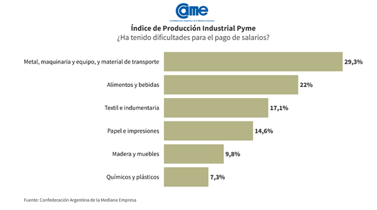Según los datos relevados, el 29,3% de las firmas del sector Metal, maquinaria y equipo, y material de transporte ha reportado dificultades para afrontar este compromiso, una situación que refleja la presión que ejerce el encarecimiento de insumos importados y la competencia con productos del exterior.