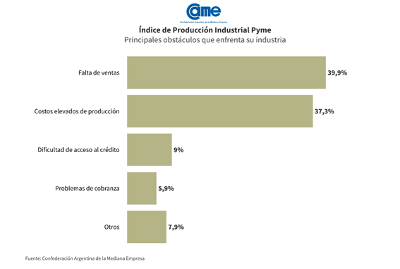 Los resultados surgen del Índice de Producción Industrial Pyme (IPIP) que elabora CAME, a partir de un relevamiento a 389 industrias pymes a nivel federal.