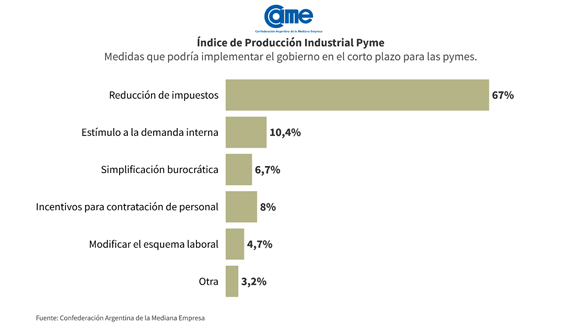 Pese a la situación desafiante, los empresarios aún ven margen para la recuperación si se implementan políticas adecuadas. Al ser consultados sobre qué medidas serían más efectivas en el corto plazo, el 67% señaló que la reducción de impuestos sería clave para aliviar la presión sobre la rentabilidad y mejorar la competitividad.