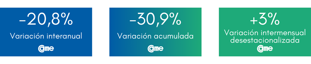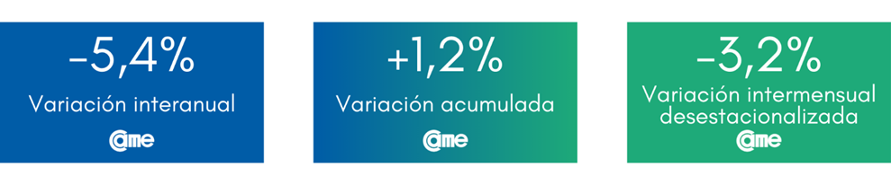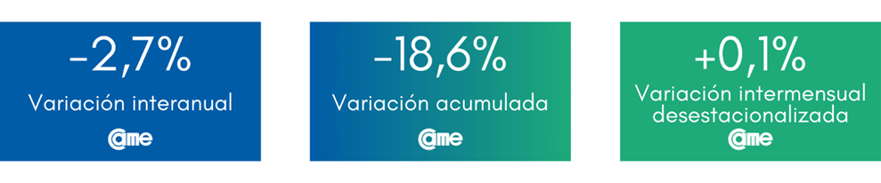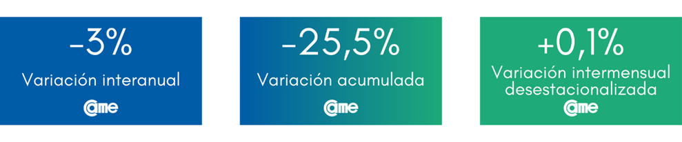 Hubo una disminución del 3% en septiembre, que suma una retracción de 25,5% en el segmento de los nueve meses respecto al año pasado. En tanto, en la comparación intermensual mejoró 0,1%.