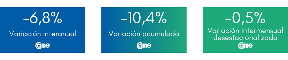 Se registró un descenso del 6,8% interanual en septiembre y se acumulan un retroceso de 10,4% en los primeros nueve meses comparado al año pasado. En el contraste intermensual cayeron 0,5%.