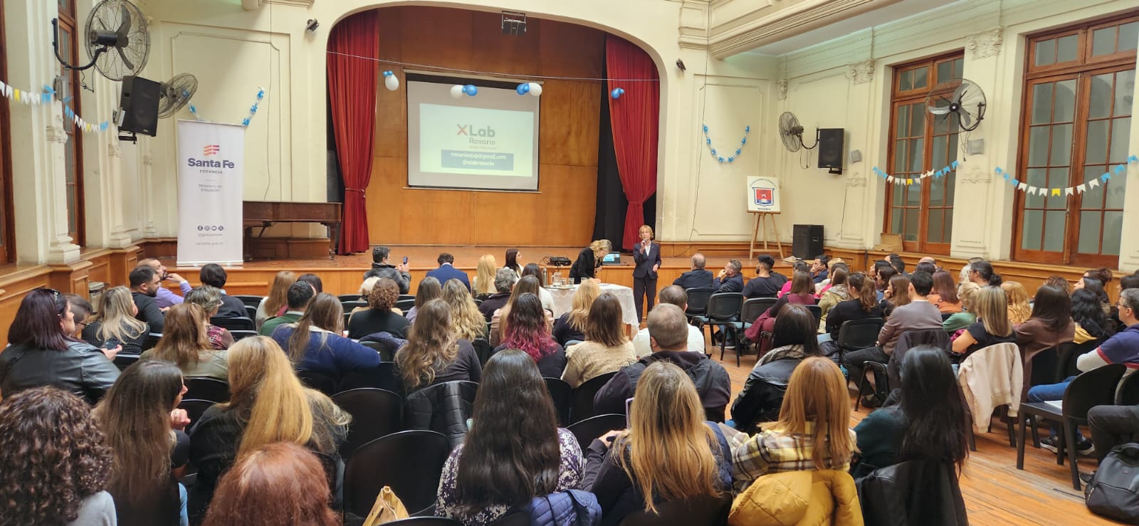 El Ministerio de Educación de la provincia, en articulación con XLab Göttingen (Alemania) y XLab Rosario, llevó adelante la conferencia “Educación de la Ciencia” en la escuela Normal Superior Nº 2 de Rosario. La jornada estuvo encabezada por la investigadora alemana Eva-María Neher, creadora de XLab Göttingen, y la profesora Laura Scirocco, directora de XLab Rosario.