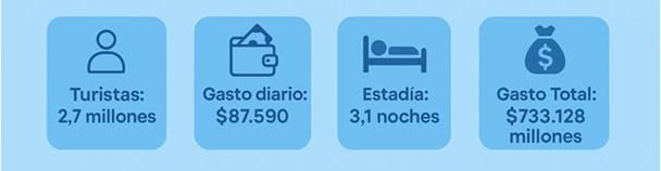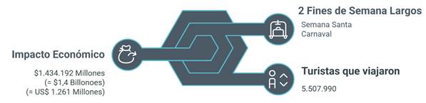 En lo que va del año, van dos fines de semana largos, donde viajaron 5.507.990 turistas y gastaron $1.434.192 millones ($1,4 billones o US$1.261 millones).